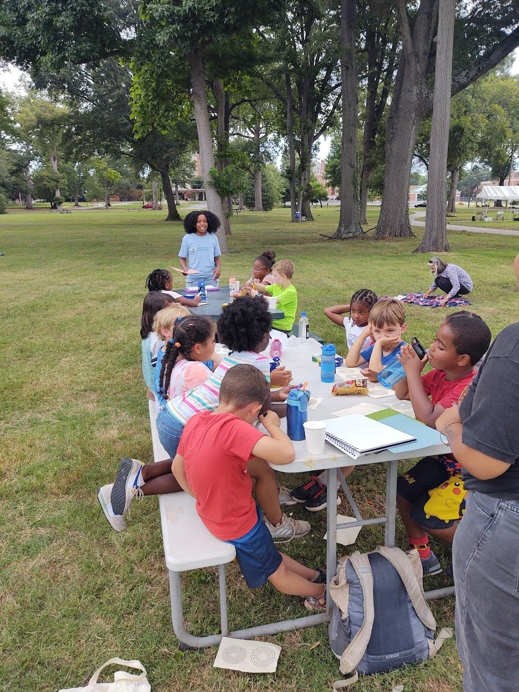 Throughout 9 weeks, campers from the Northside Family YMCA, YMCA of Greater Richmond (grades K-5) visited Yaupon Place park on Tuesday and Thursday mornings to explore a deeper, more dynamic relationship with the Earth, their community, one’s self, and Spirit - learning real ways all are interconnected. Activities throughout the park and farm included recreation, storytelling, art, spirituality, environmental justice, gardening, peacebuilding and personal wellness. At the end of every day, intergenerational “reading buddy” groups, led by community volunteers, enjoyed reading and eating lunch together. A diverse array of local environmental leaders shared their stories and worked with the kids weekly.